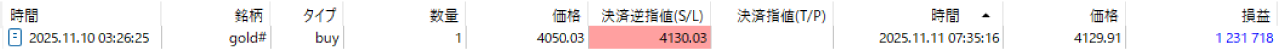 【ゴールド15分足/11月11日10時ごろ】