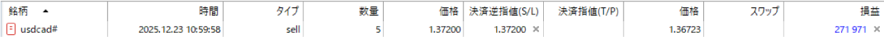【ドルカナダ15分足/12月23日18時過ぎ】