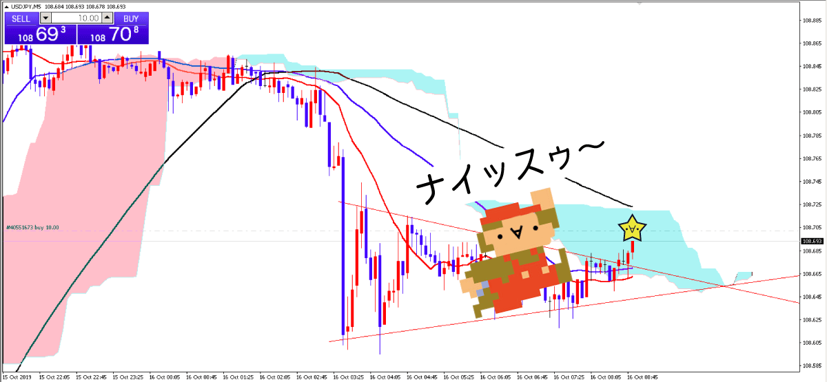 エントリー後すぐにビョイ〜ンと伸び、MA100&下降雲を突破!幸先の良いスタートです♪
