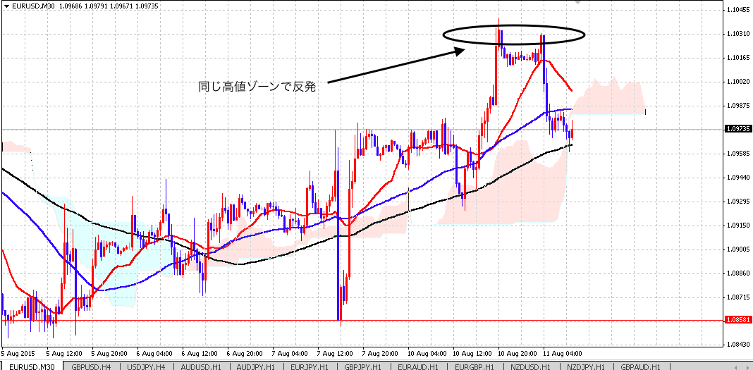 EURUSDというメジャー通貨ペア、1時間足ということを考えれば、