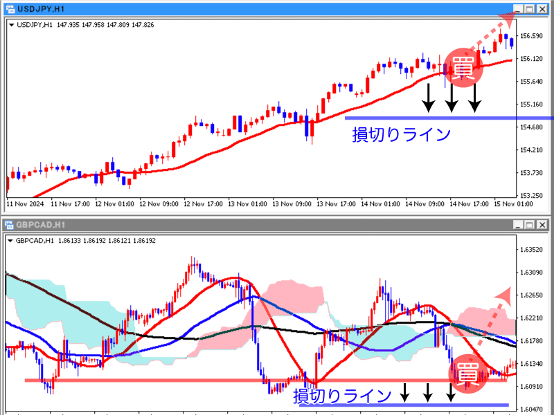 ④ポイント:損切りラインはエントリーの根拠が崩れるポイントに設置する